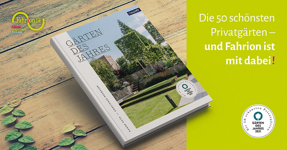 Und Fahrion ist dabei! Einen einzigartigen Überblick über die schönsten Privatgärten im deutschsprachigen Raum bietet die Dokumentation zum Wettbewerb GÄRTEN DES JAHRES 2021. Landschaftsarchitekten, Gartengestalter sowie Garten- und Landschaftsbauer werden jährlich aufgerufen, besonders gelungene, realisierte Privatgärten einzureichen, die von einer renommierten Jury ausgewählt und prämiert werden. Das Buch zeigt eine beeindruckende Vielfalt unterschiedlichster Privatgärten anhand von über 400 Farbabbildungen und Gartenplänen. Detaillierte Angaben zu Besonderheiten des Grundstücks, des Konzepts, der verwendeten Materialien und der Auswahl der Pflanzen runden die 50 Gartenporträts ab – und wir sind mit einem unserer Projekte geehrt worden Teil dieser prämierten 50 Gärten zu sein. Der Wettbewerb zählt zu den wichtigsten Branchenevents.